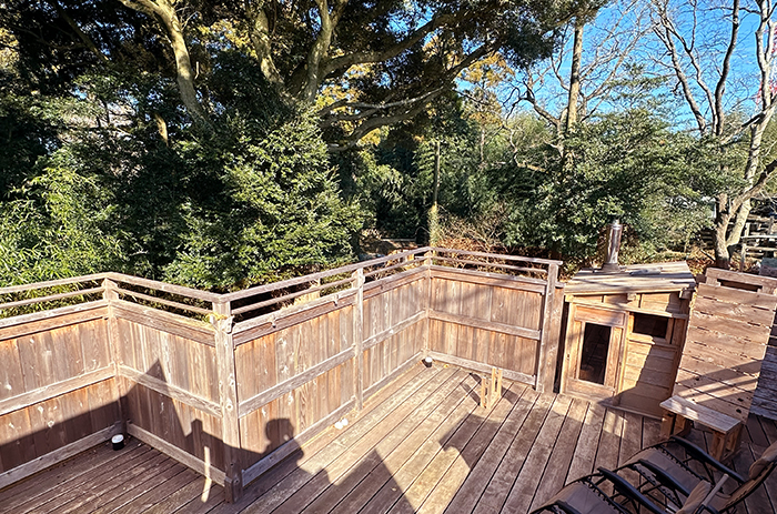 サウナ・更衣室・周りを囲む塀。全て職人さんが手掛けており、細部にまでこだわっていただきました。
